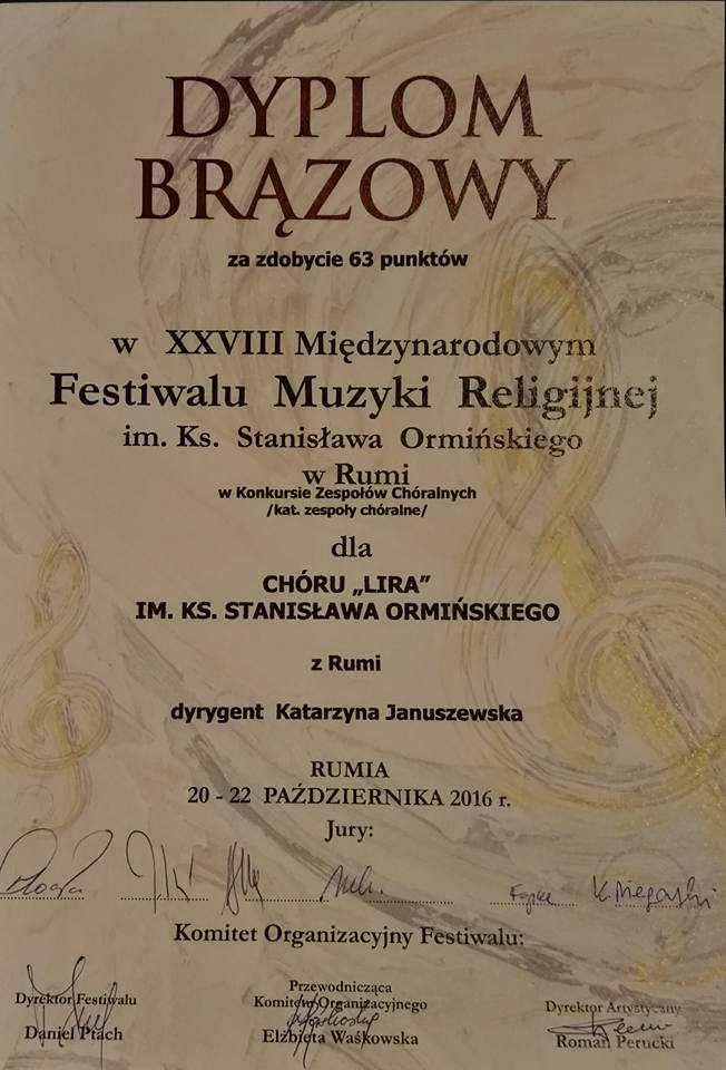 Współzawodniczyliśmy ze znamienitymi chórami z całej polski co jeszcze bardziej napawa nas radością z możliwości uczestniczenia w tym święcie chóralistyki. Tym bardziej jesteśmy dumni z nagrody oraz z możliwości promowania parafii i miasta Rumia.